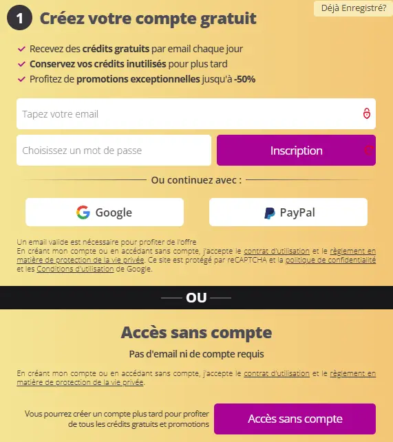 Accès discret, rapide, sans carte et sans engagement. Parfait pour explorer avant d’oser.